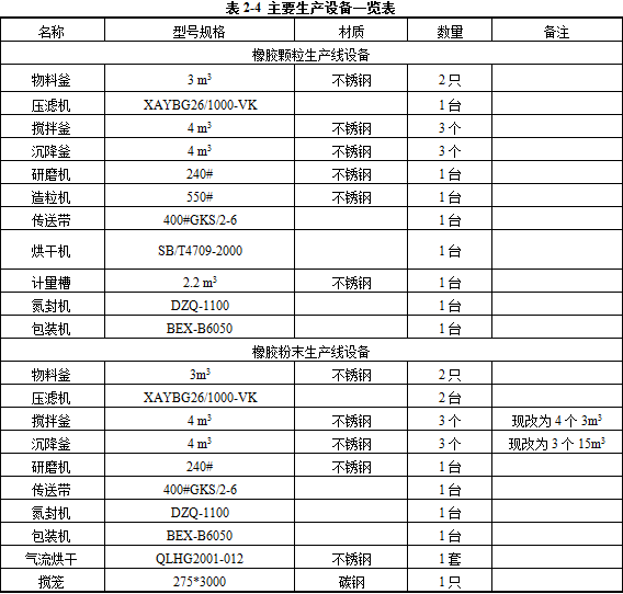主要生產(chǎn)設(shè)備見下表2-4
