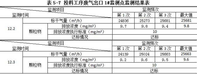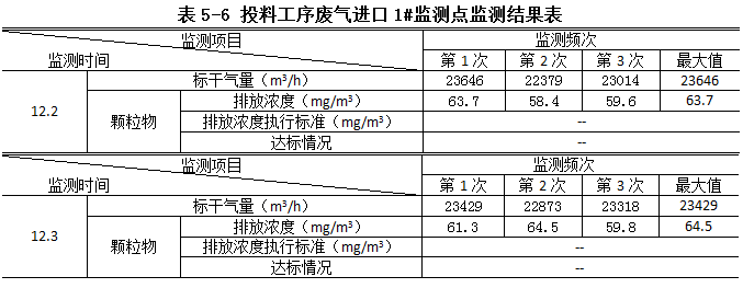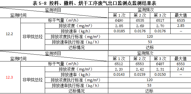 有組織監(jiān)測結(jié)果見表5-6至5-13。