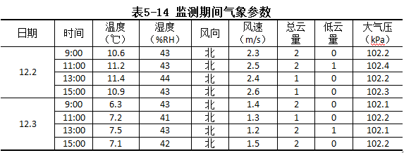 驗(yàn)收監(jiān)測期間,氣象參數(shù)監(jiān)測結(jié)果見表5-14,經(jīng)適宜度分析,較適宜無組織排放監(jiān)測。