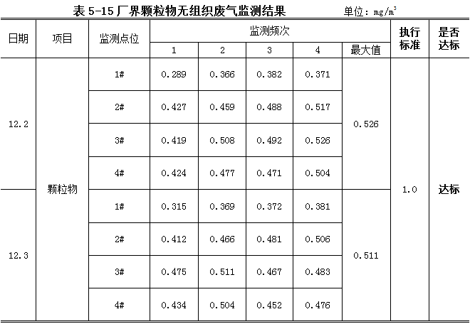 5.1.5.2無組織監(jiān)測結(jié)果及評價(jià)
