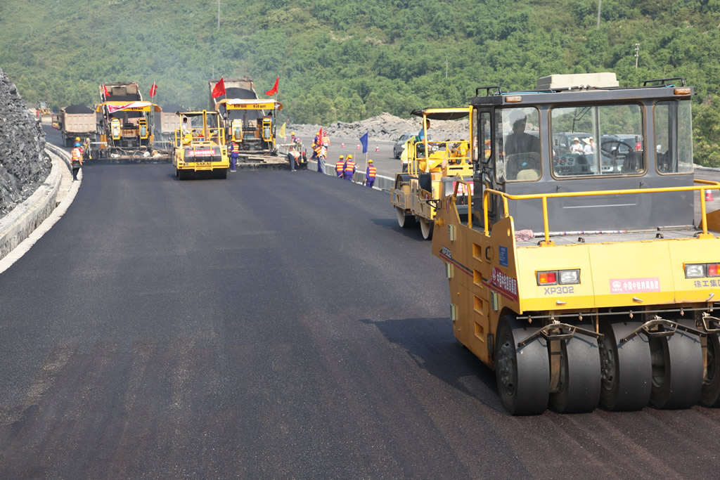 SBR改性瀝青混合料在攤鋪時(shí)應(yīng)連續(xù)的施工,以減少攤鋪機(jī)和壓路機(jī)的停頓,盡量減少橫縫,提高面層平整度。表面層宜采用攤鋪前后保持相同高差的雪橇式攤鋪厚度控制方式。由于SBR改性瀝青粘度較大,粘附力強(qiáng),攤鋪速度應(yīng)控制在2m/min,做到緩慢、均勻、連續(xù)不間斷地?cái)備?,不要隨意變換速度或中途停頓。提高攤鋪過程中的預(yù)壓密實(shí)度,SBR-II-B改性瀝青混合料在高溫狀態(tài)下主要是靠粗集料的嵌擠作用,可適當(dāng)提高夯錘振搗頻率,使剩余壓實(shí)系數(shù)減小,初壓的痕跡也極小,進(jìn)而確保路面的最終平整度。