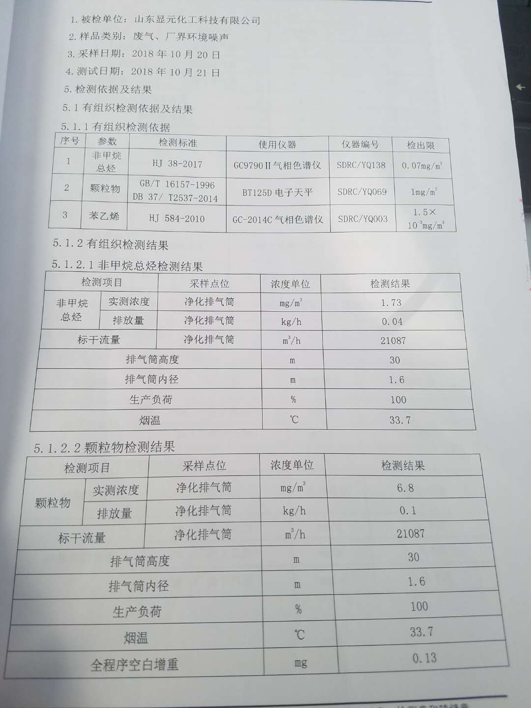 【公示】山東顯元廢氣第四季度檢測(cè)報(bào)告
